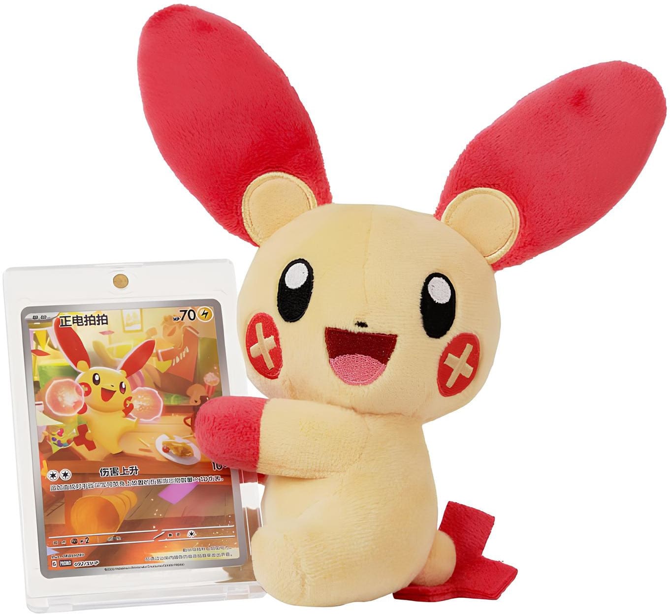 In jeder Box finden Trainer eine zufällig gewählte holografische Pokémon-Karte sowie ein dazu passendes Plüschtier. Zur Auswahl stehen Pikachu, Raichu, Plusle, Minun, Pachirisu und Pamomamo. Es handelt sich um Nachdrucke aus den Erweiterungen 151, Entwicklungen in Paldea, Paradoxrift und Karmesin & Purpur.