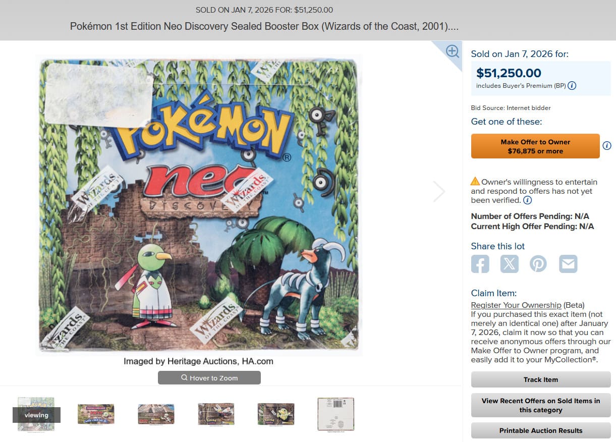 Originalverpackte Booster-Displays aus der limitierten Erstauflage von Neo Discovery sind heutzutage kaum noch auf dem Markt zu finden. Der aktuelle Handelswert liegt bei bis zu 51.250 US-Dollar (ca. 44.300 €)